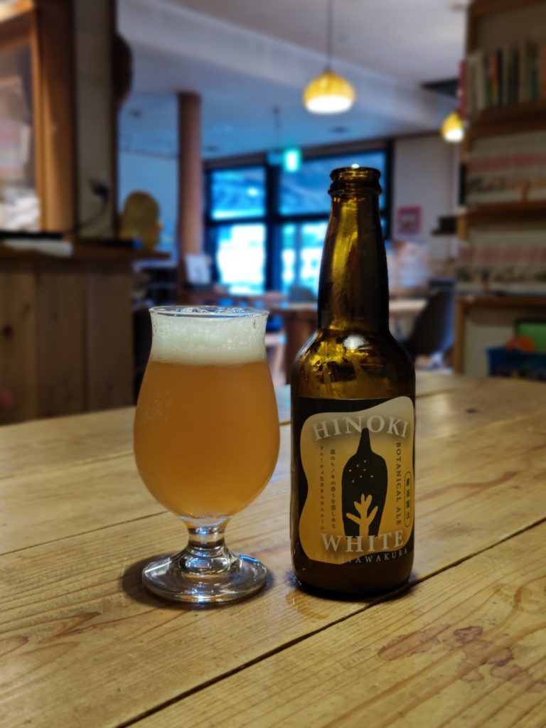 このヒノキビールは、西粟倉のヒノキから抽出した天然の香り成分をビールに加えた特別醸造品で、一般的なビールとは全く異なる上品で清涼感のある味わいが特徴です。